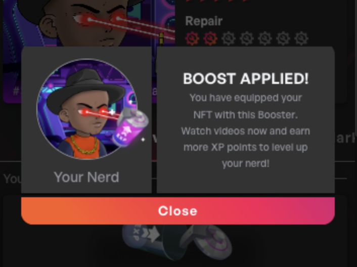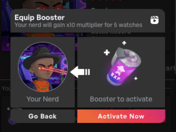 Go to the "Buy Items" section and click on "Buy Now" on the booster you want to equip your nerd with corresponding to your Nerd's Rarity