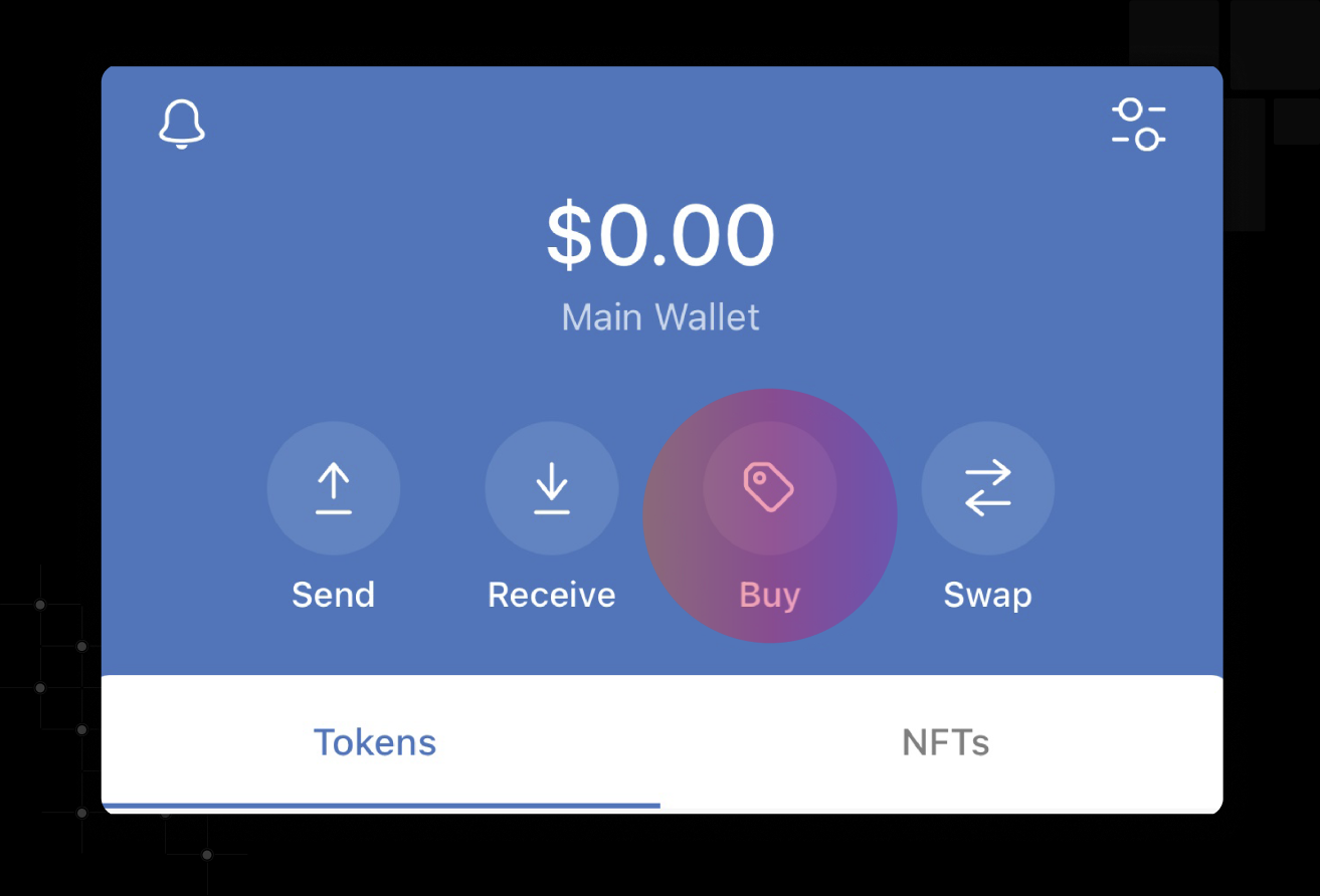 Adding funds to Trustwallet from your mobile device is quite easy to do. Firstly, go to the “Buy” page which is also circled above. You will then be asked to select a coin to buy.